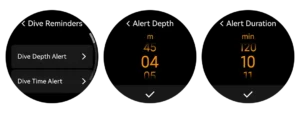 This function notifies the diver when preset depth or time limits are exceeded. It helps maintain awareness underwater, prevents overexertion, and keeps every dive within safe limits.